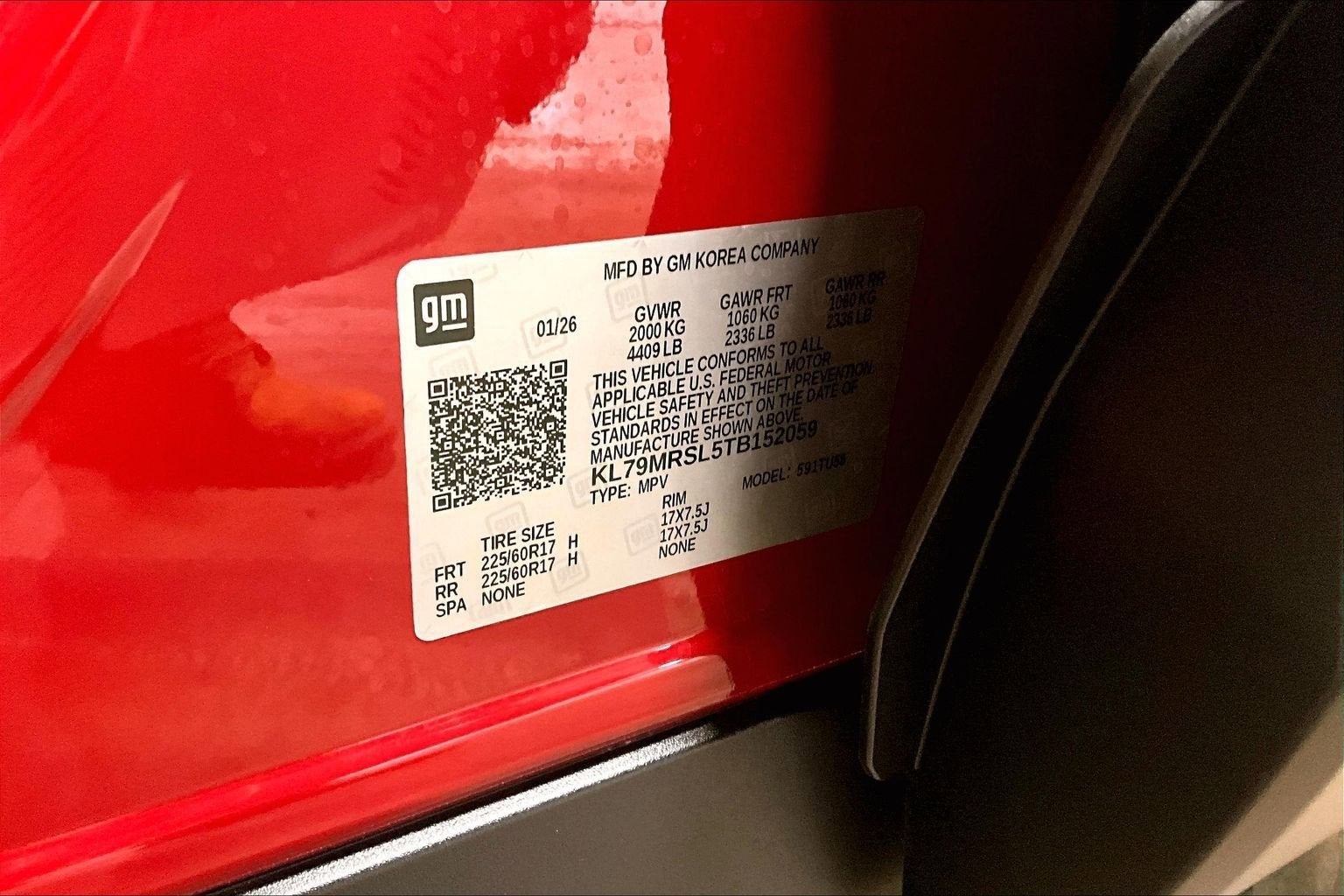 Apex Red 2026 Chevrolet TrailBlazer LT AWD 9-Speed Automatic 1.3L I3 Turbocharged DOHC 12V LEV3-SULEV30 155hp 1 Type-A and 1 Type-C USB Charging-Only Ports, 1 Type-A and 1 Type-C USB Ports, 120-Volt Power Outlet, 2-Way Power Driver Lumbar Seat Adjuster, 3.17 Final Drive Axle Ratio, 4-Way Manual Front Passenger Seat Adjuster, 4-Wheel Disc Brakes, 6 Speakers, 6-Speaker Audio System Feature with Amplifier, 6-Way Manual Driver Seat Adjuster, 8-Way Power Driver Seat Adjuster, ABS brakes, Air Conditioning, Alloy wheels, AM/FM radio: SiriusXM, Auto High-beam Headlights, Brake assist, Bumpers: body-color, Cabin Humidity Sensor, Cloth Seat Trim, Compass, Convenience Package, Delay-off headlights, Driver and Front Passenger Illuminated Vanity Mirrors, Driver Confidence Package, Driver door bin, Driver vanity mirror, Dual front impact airbags, Dual front side impact airbags, Dual-Pane Panoramic Power Sunroof, Electronic Stability Control, Emergency communication system: OnStar and Chevrolet connected services capable, Exterior Parking Camera Rear, Flat-Folding Front Passenger Seatback, Front anti-roll bar, Front Bucket Seats, Front Center Armrest, Front License Plate Bracket, Front reading lights, Front wheel independent suspension, Fully automatic headlights, Heated door mirrors, Heated Driver and Front Passenger Seats, Heated Steering Wheel, Illuminated entry, Inside Rear-View Auto-Dimming Mirror, Knee airbag, Lane Change Alert with Side Blind Zone Alert, Low tire pressure warning, LT Cold Weather Package, Occupant sensing airbag, Overhead airbag, Overhead console, Panic alarm, Passenger door bin, Passenger vanity mirror, Power door mirrors, Power Liftgate, Power steering, Power windows, Radio data system, Radio: AM/FM Stereo Audio System, Rear Center Armrest, Rear Cross Traffic Alert, Rear Park Assist, Rear side impact airbag, Rear window defroster, Rear window wiper, Remote keyless entry, Ride and Handling Suspension, Satin Silver and Chrome Wrapped Shift Knob, Security system, Single-Zone Automatic Climate Control, SiriusXM Trial Subscription, Speed control, Split folding rear seat, Spoiler, Steering wheel mounted audio controls, Tachometer, Telescoping steering wheel, Tilt steering wheel, Traction control, Trip computer, Variably intermittent wipers, Wheels: 17 High Gloss Black Machined Aluminum, Wireless Apple CarPlay/Android Auto, Wireless Charging, Wrapped Steering Wheel.