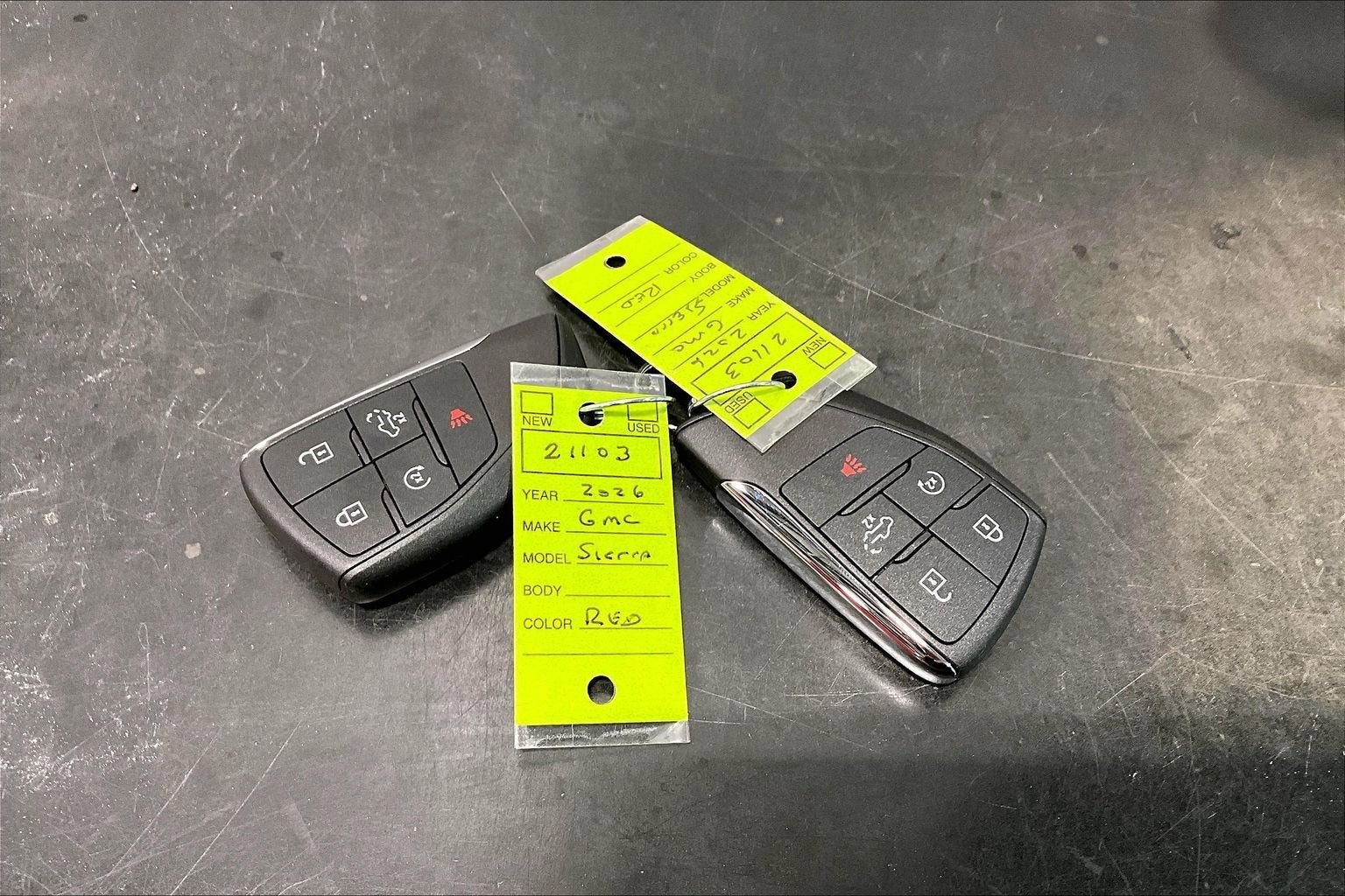Cardinal Red 2026 GMC Sierra 1500 SLE 4WD 10-Speed Automatic EcoTec3 5.3L V8 10-Speed Automatic, 4WD, Black Cloth, 10-Way Power Driver Seat Adjuster with Lumbar, 120-Volt Bed Mounted Power Outlet, 120-Volt Interior Power Outlet, 170 Amp Alternator, 2 Charge/Data USB Ports, 2 Type-C Charge-Only Rear USB Ports, 20 Polished Aluminum Wheels, 220 Amp Alternator, 3.23 Rear Axle Ratio, 4-Way Manual Passenger Seat Adjuster, 4-Wheel Disc Brakes, 6 Speakers, 6-Speaker Audio System Feature, ABS brakes, Adaptive Cruise Control, Air Conditioning, All-Weather Floor Liner, Alloy wheels, AM/FM radio: SiriusXM with 360L, Apple CarPlay/Android Auto, Auto High-beam Headlights, Auto-Locking Rear Differential, Automatic Emergency Braking, Automatic temperature control, Auxiliary External Transmission Oil Cooler, Brake assist, Buckle to Drive, Bumpers: chrome, Chrome Header with Medium Silver Grille Insert Bars, Cloth Seat Trim, Color-Keyed Carpeting Floor Covering, Compass, Deep-Tinted Glass, Delay-off headlights, Driver door bin, Driver vanity mirror, Dual Exhaust System, Dual front impact airbags, Dual front side impact airbags, Dual-Zone Automatic Climate Control, Electric Rear-Window Defogger, Electronic Stability Control, Emergency communication system: OnStar, External Engine Oil Cooling, Following Distance Indicator, Forward Collision Alert, Front 40/20/40 Split-Bench Seat, Front anti-roll bar, Front Center Armrest w/Storage, Front dual zone A/C, Front Frame-Mounted Black Recovery Hooks, Front License Plate Kit, Front Pedestrian Braking, Front reading lights, Front Rubberized-Vinyl Floor Mats, Front wheel independent suspension, Fully automatic headlights, HD Rear Vision Camera, HD Surround Vision, Heated door mirrors, Heated Driver and Front Outboard Passenger Seating, Heated front seats, Heated steering wheel, Heavy-Duty Air Filter, High Capacity Suspension Package, Hill Descent Control, Hitch Guidance, Hitch View, Illuminated entry, in-Vehicle Trailering System App, Integrated Trailer Brake Controller, IntelliBeam Automatic High Beam on/Off, Keyless Open and Start, Lane Keep Assist with Lane Departure Warning, LED Cargo Area Lighting, Low tire pressure warning, Manual Tilt-Wheel and Telescoping Steering Column, Navigation System, Occupant sensing airbag, Off-Road Suspension, OnStar Services Capable, Outside temperature display, Overhead airbag, Overhead console, Panic alarm, Passenger door bin, Passenger vanity mirror, Perimeter Lighting, Power Door Locks, Power door mirrors, Power driver seat, Power Front Windows with Driver Express Up/Down, Power Front Windows with Passenger Express Down, Power Rear Windows with Express Down, Power Sliding Rear Window with Rear Defogger, Power steering, Power windows, Preferred Equipment Group 3SA, Preferred Package, Push Button Start, Radio data system, Radio: Premium GMC Infotainment Audio System, Rear Cross Traffic Braking, Rear Pedestrian Detection, Rear reading lights, Rear Rubberized-Vinyl Floor Mats, Rear step bumper, Rear Wheelhouse Liners, Rear window defroster, Remote keyless entry, Remote Start Package, Remote Vehicle Starter System, Security system, Sierra Safety Plus Package, SiriusXM with 360L Trial Subscription, SLE Convenience Package, SLE Value Package, Speed control, Speed-sensing steering, Split folding rear seat, Spray-on Pickup Bedliner with GMC Logo, Standard Suspension Package, Steering Wheel Audio Controls, Steering wheel mounted audio controls, Tachometer, Telescoping steering wheel, Theft Deterrent System (unauthorized Entry), Tilt steering wheel, Traction control, Trailer Camera Provisions, Trailer Side Blind Zone Alert, Trailering Package, Trip computer, Ultrasonic Front and Rear Park Assist, Universal Home Remote, Variably intermittent wipers, Voltmeter, Wheels: 17 x 8 Bright Silver Painted Aluminum, Wheels: 18 x 8.5 6-Spoke Machined Aluminum, Wi-Fi Hotspot Capable, Wireless Apple CarPlay/Wireless Android Auto, X31 Hard Badg